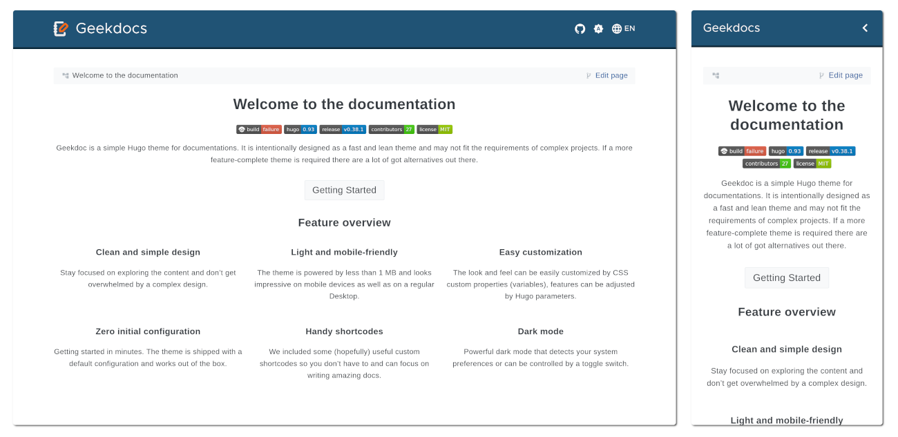 Upgrade the Geekdocs theme from 0.32.4 to 0.44.1. This changes the layout a little bit; most notably the 'documentation' menu is in a larger font. I tried the upgrade to solve an issue of images not appearing (while writing not-yet-committed changes). That wasn't solved by the upgrade, but in the spirit of keeping up to date I'd thought I'd commit this upgrade anyway.